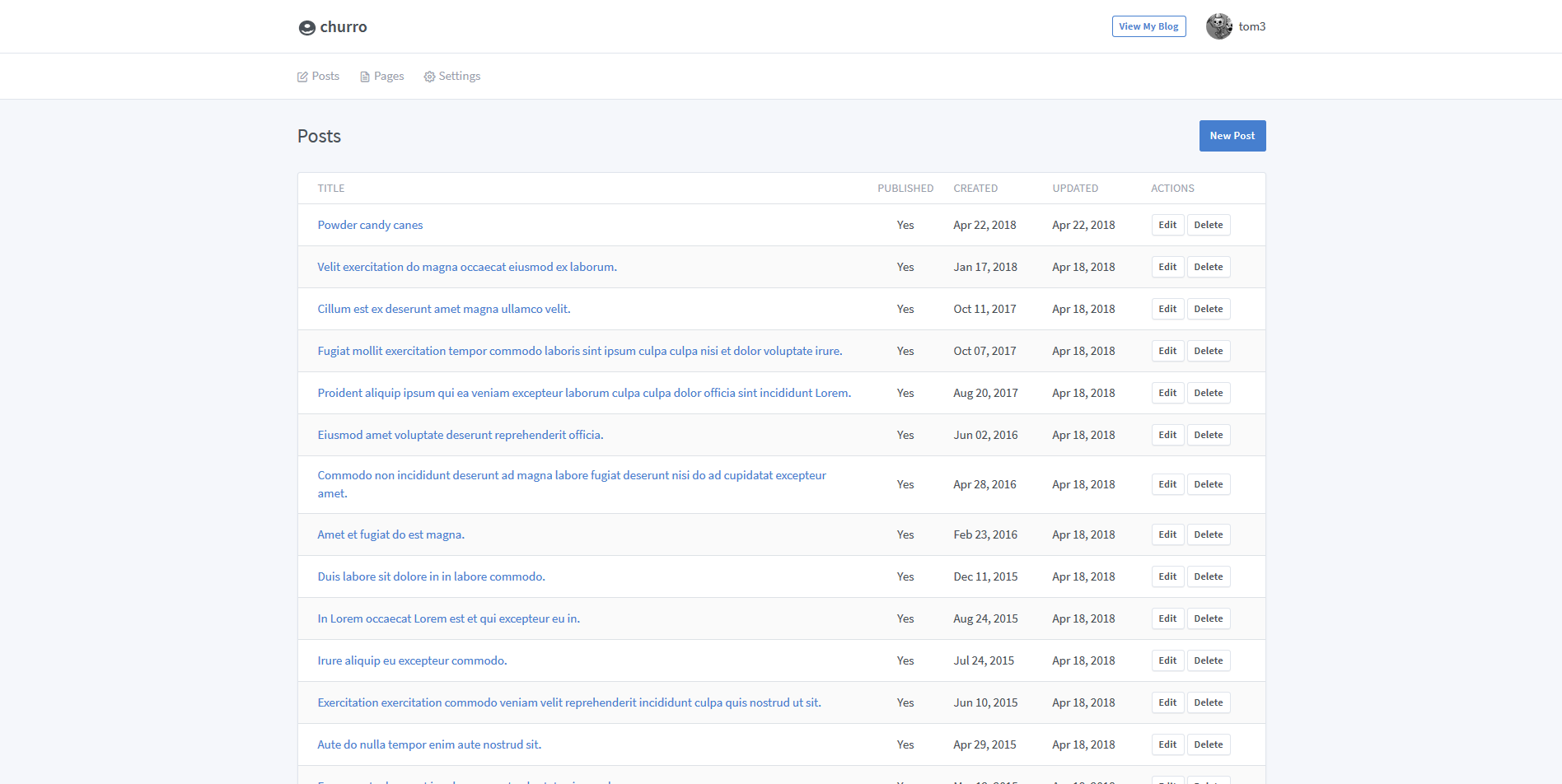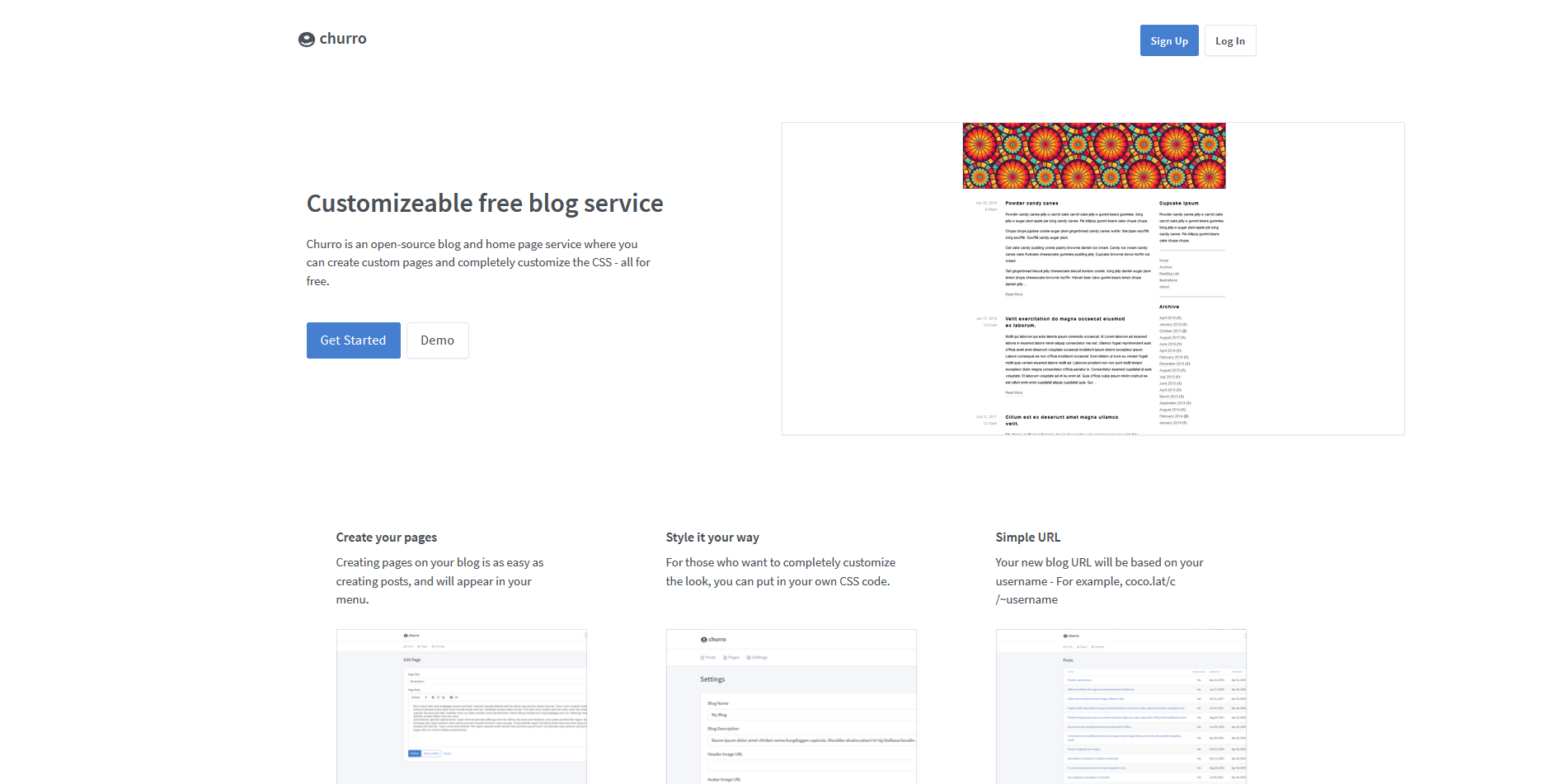 Churro blog is a blog hosting service written in PHP using the CodeIgniter framework.