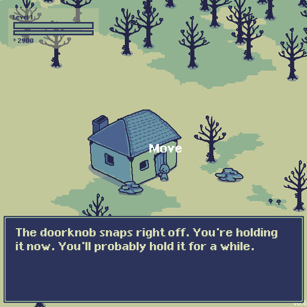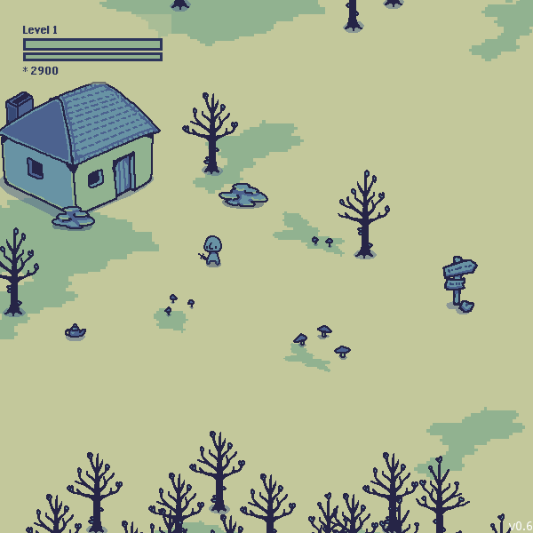 You start off in a fairy ring, and upon approaching your house you obtain your weapon, which is a door knob.
