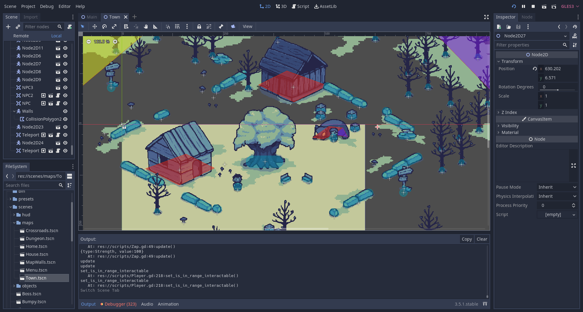 A town map was also created, along with some basic features: