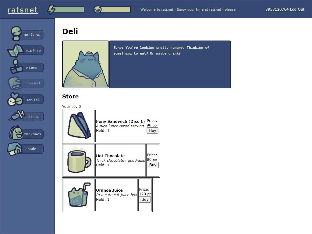 Ratsnet is a nostalgic browser game where users may keep various pets and explore the world.