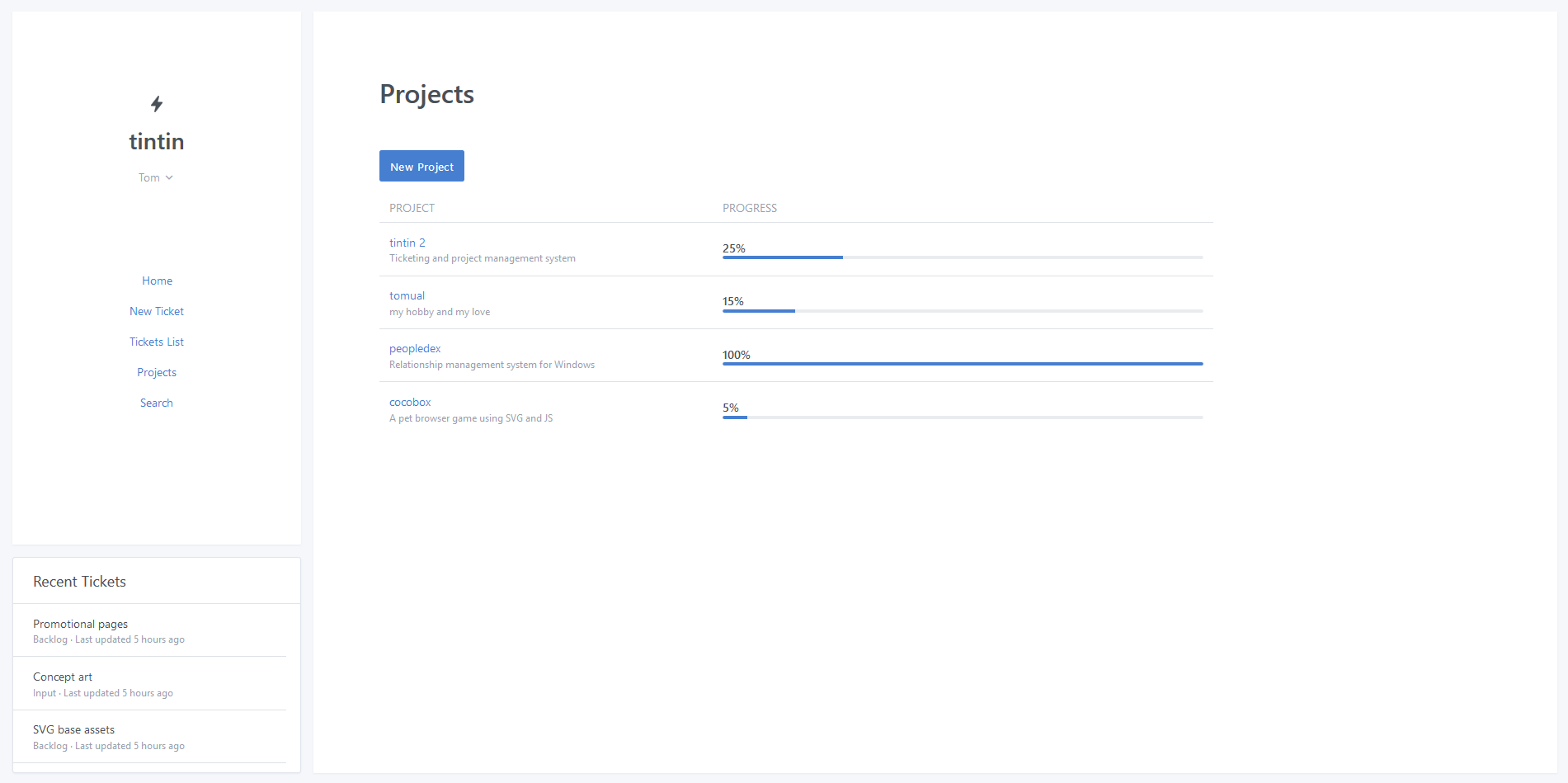 - Custom projects w/ progress bar