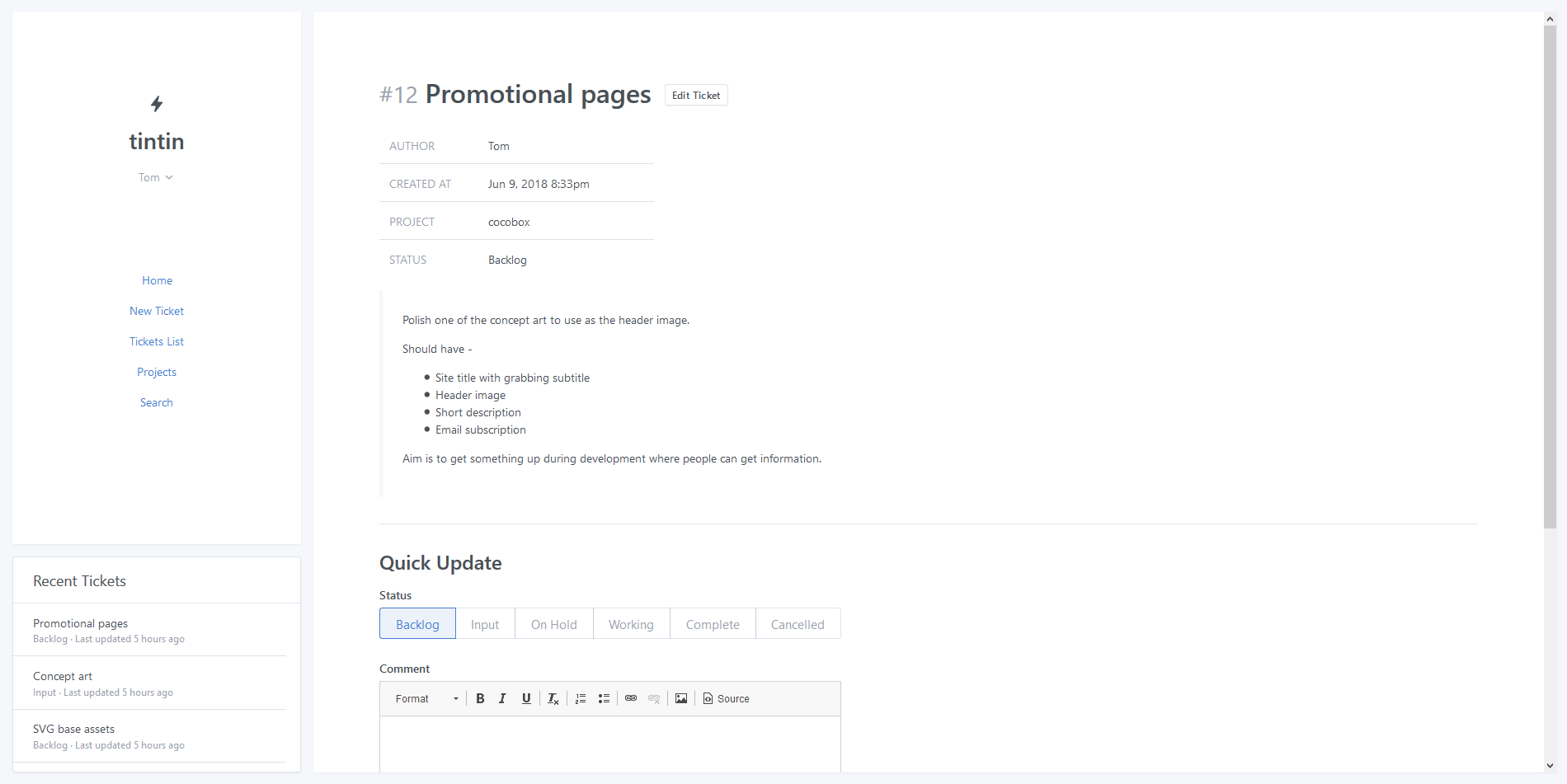 Tintin 2 is a ticketing system which is an update to the original Tintin created.