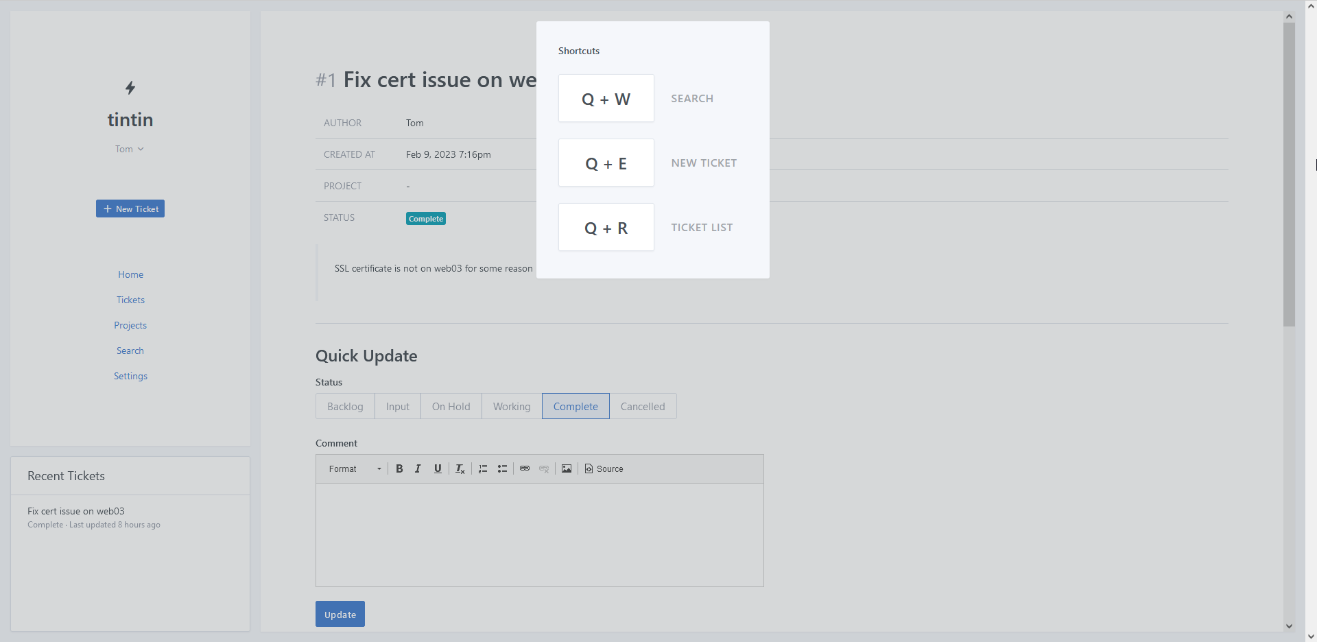 I wanted to recreate the ticketing system I made earlier with a modern appearance, and try out custom keyboard shortcuts.