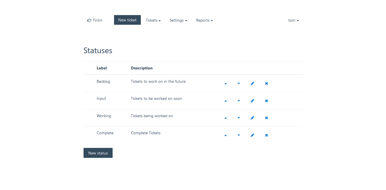 - System - Custom CSS, default ticket status, ticket "start" status (working status), complete status, which status tickets to show on home page