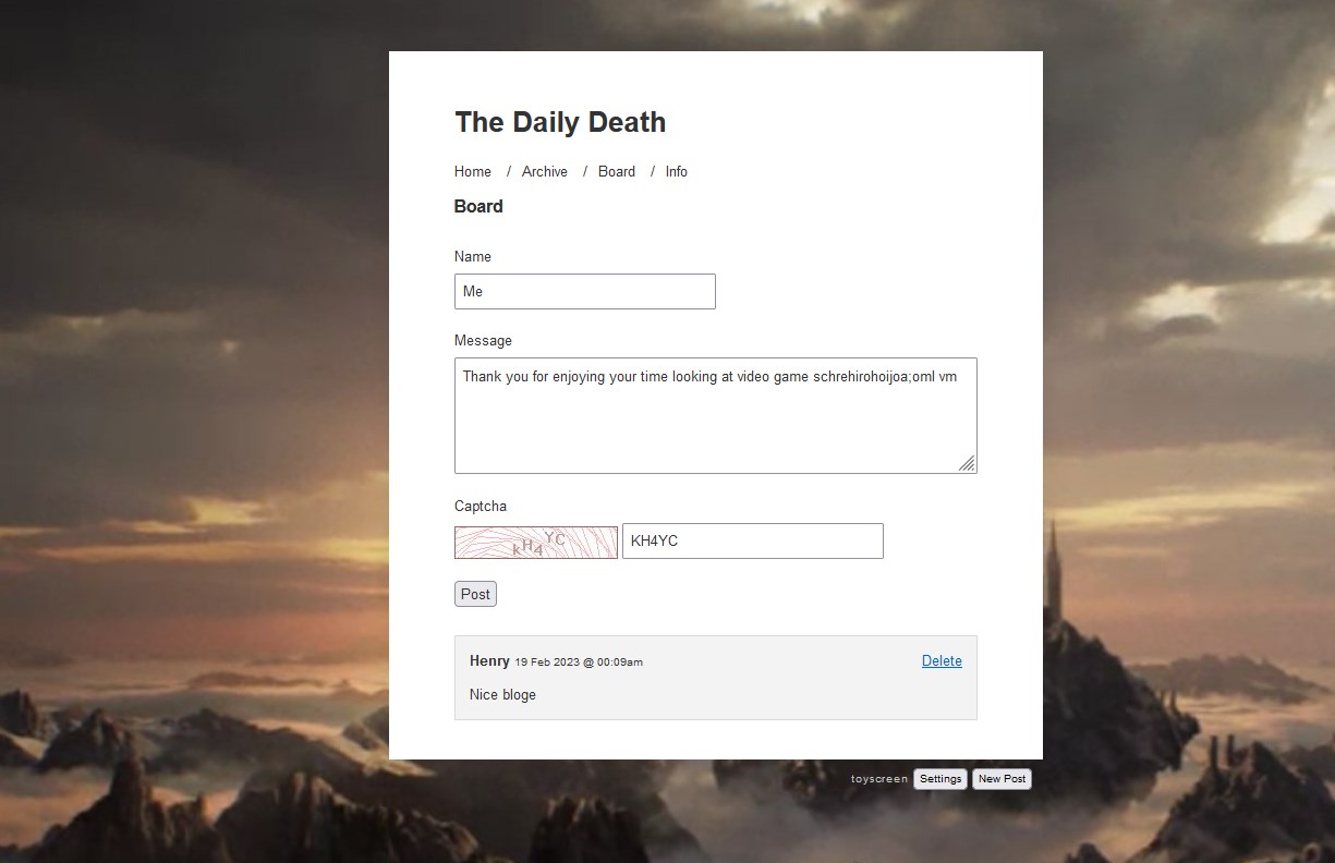 The site's purpose is for the user to frequently post screenshots from the game they are playing.